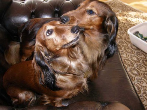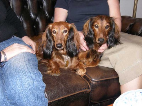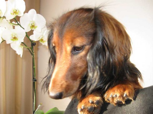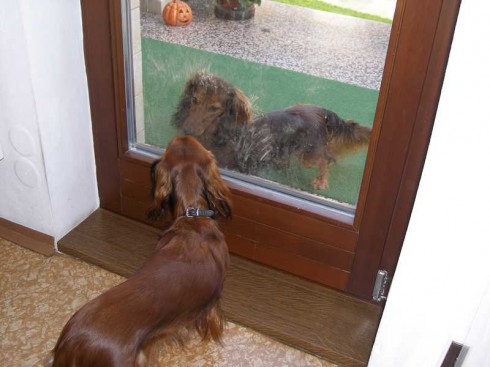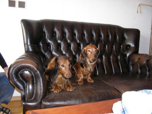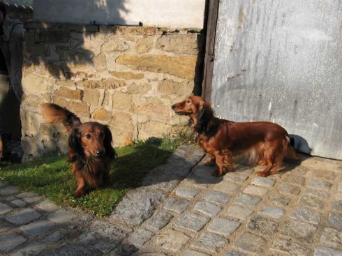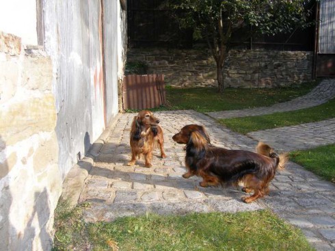 V sobotu 22.10.2011 sme si privstali skoro ráno do mrazivého počasia, naložili sme do auta Citu a Tinu a vyrazili smer Rosice u Brna. Boli zvedavé, kam tak skoro ráno idú, tak sme im vysvetlili, že ideme navštíviť jediného syna City - Amoryho. V Rosicích nás už netrpezlivo čakali pri bráne rodinného domu páničkovia manželia Rybníčkovi s Amorym v náručí. To bolo radosti! Z Amorka vyrástol krásny štíhly, dlhý, bohato osrstený pán jazvečík. Poukazoval svojej maminke Cite a tete Tine svoje kráľovstvo, to znamená pekne upravený dvor so záhradou a spoločne preskúmali Amorkove tajné zákutia. Cite sa z dvora ani nechcelo ísť do vnútra. Amory nám poukazoval svoj domček, predviedol nám svoje huncútstva napr. ťahanie plyšovej myšky zo skrine (kliknite na video).